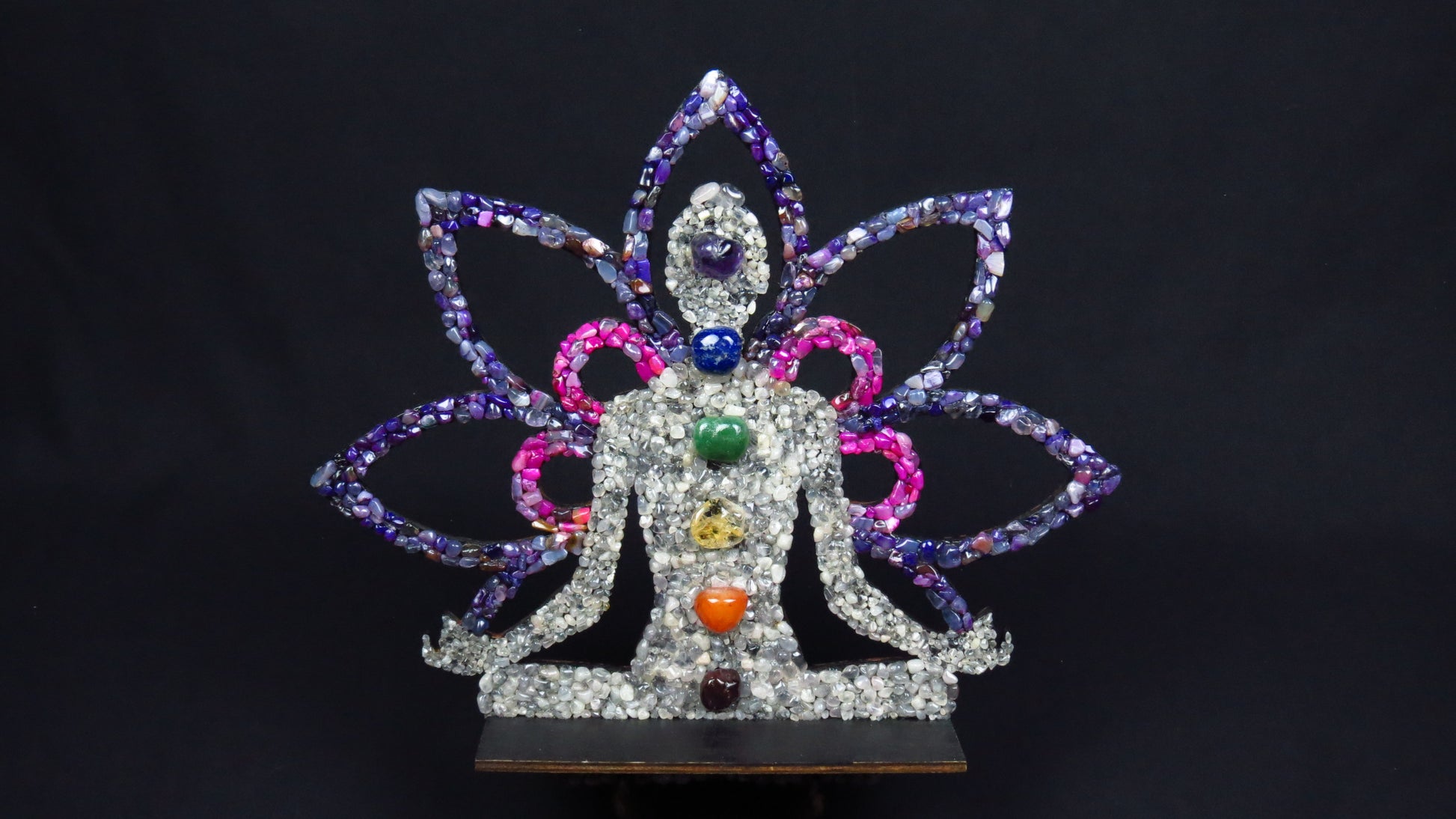 Inspirat din energia florii de lotus, această creație unică din pietre semiprețioase reprezintă trezirea spirituală. Fiecare petală violet reflectă lumina cunoașterii, iar pietrele chakrelor pulsează în ritmul energiilor universale. „Lotusul Conștiinței” este o operă dedicată celor care caută pacea interioară, claritatea și echilibrul dintre trup, minte și spirit.